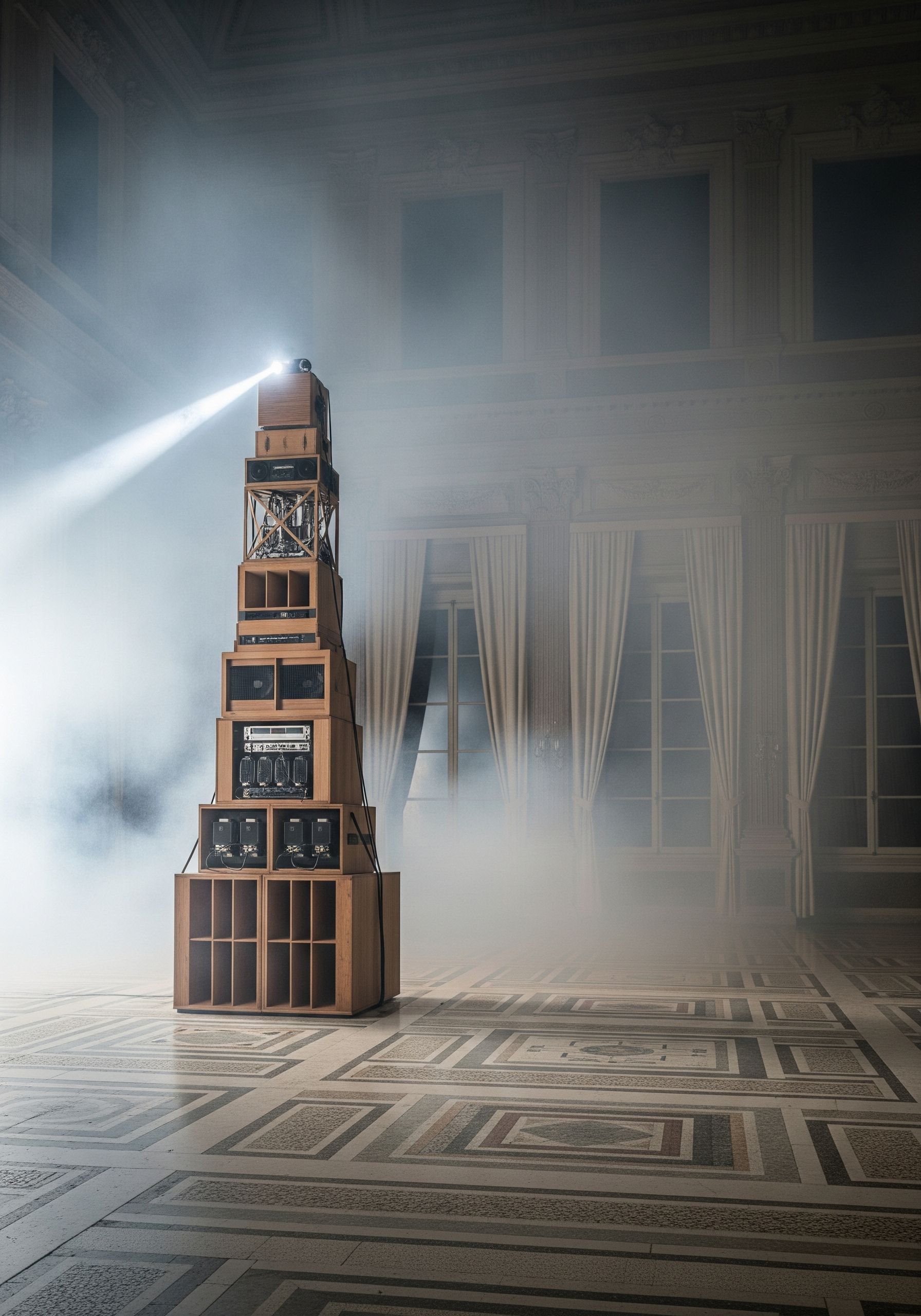 Progetti di diffusione audio realizzati da AT. Stack, spazializzazione, oggetti sonori. Da situazioni installative a feste.